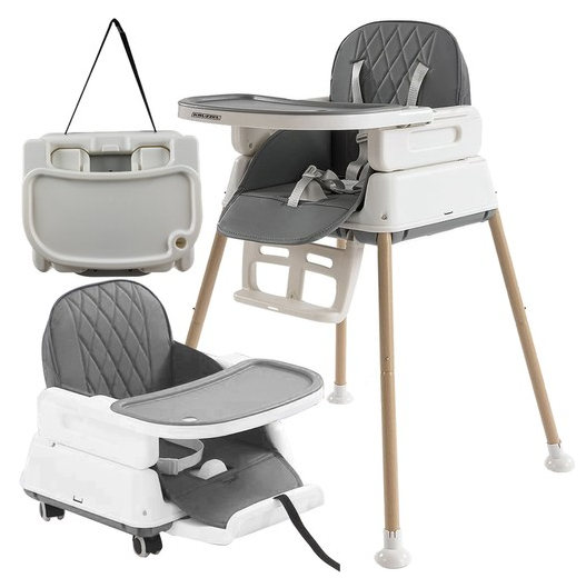 ЧОМУ СТІЛЕЦЬ 6 в 1 - це практичний вибір, ідеальний для дітей від 6 місяців життя і, що найголовніше, він росте разом з вашою дитиною. У правильній конфігурації стілець високий і зручний для батьків під час годування. Після демонтажу ніжок він стає стільчиком для старших дітей, а після зняття тацю та ременів - самостійним стільчиком.